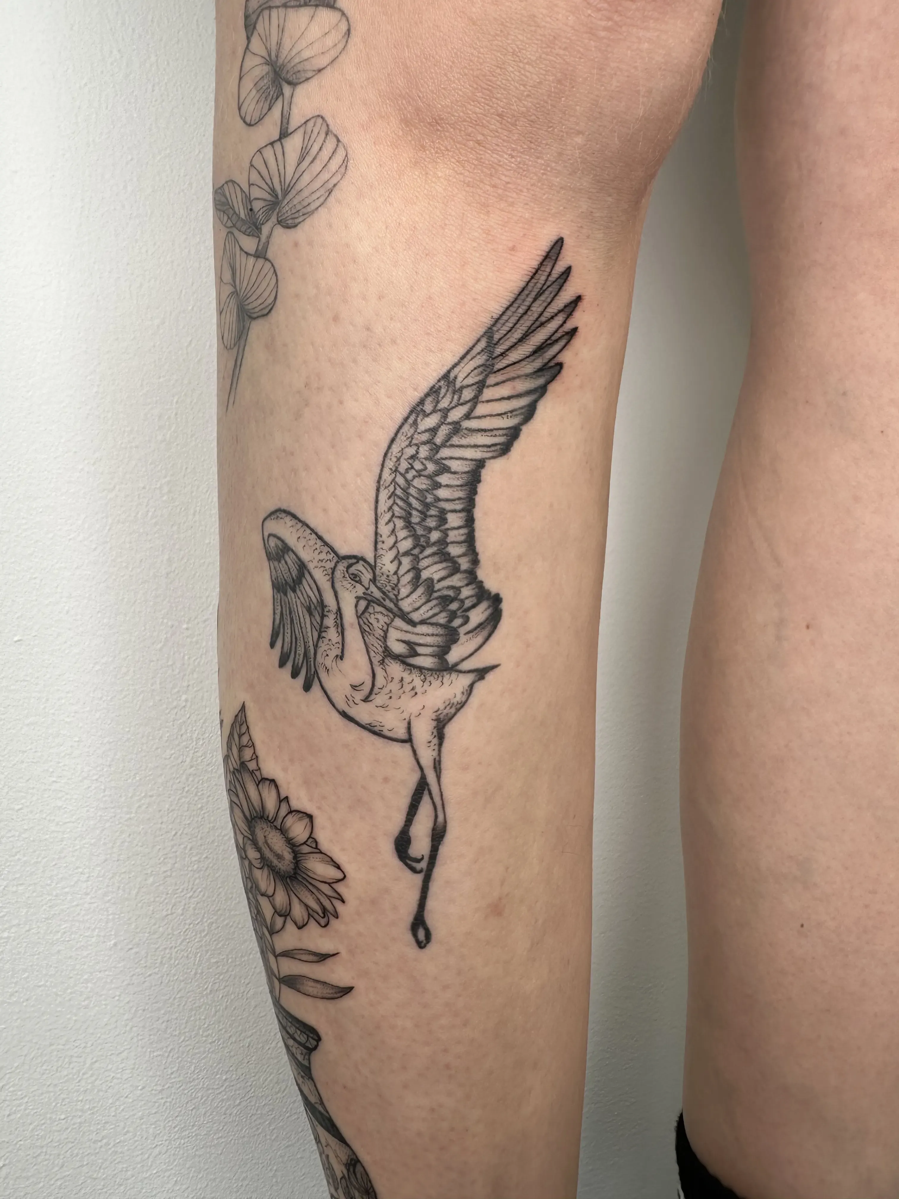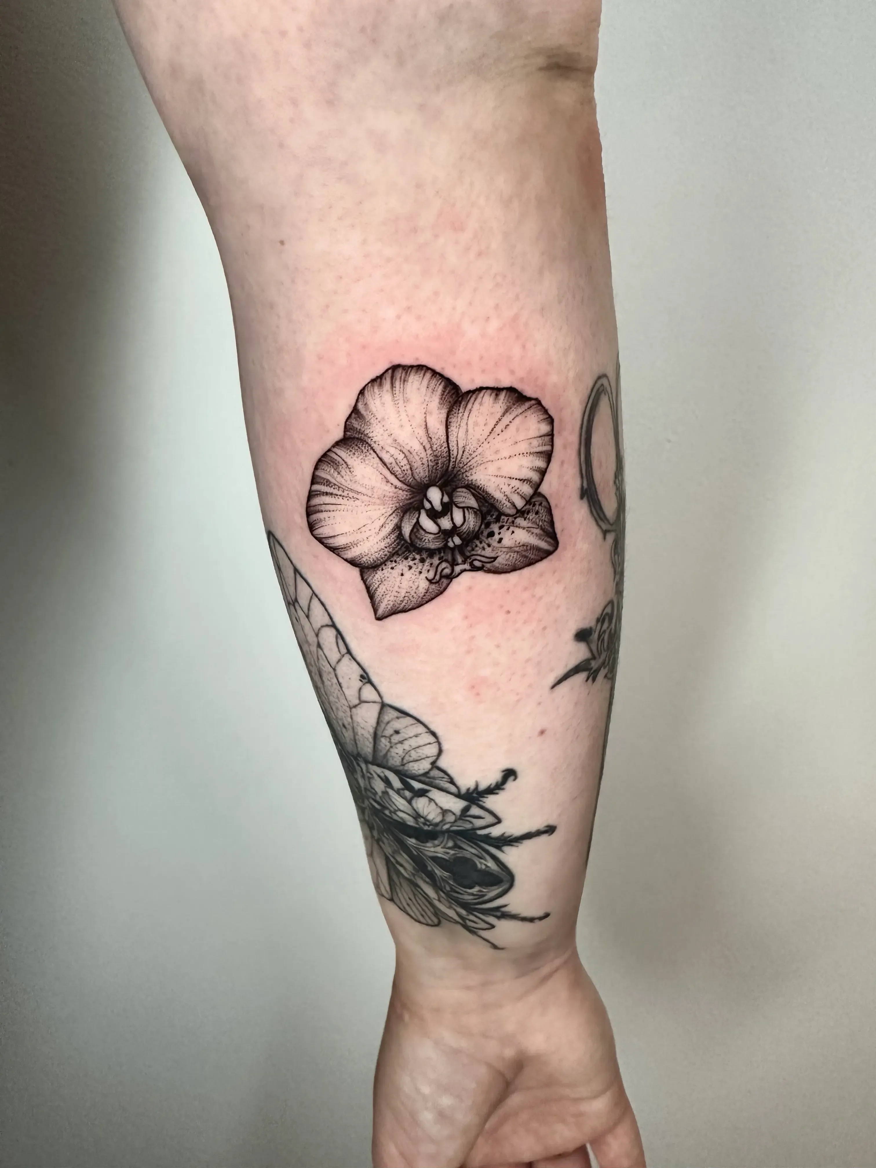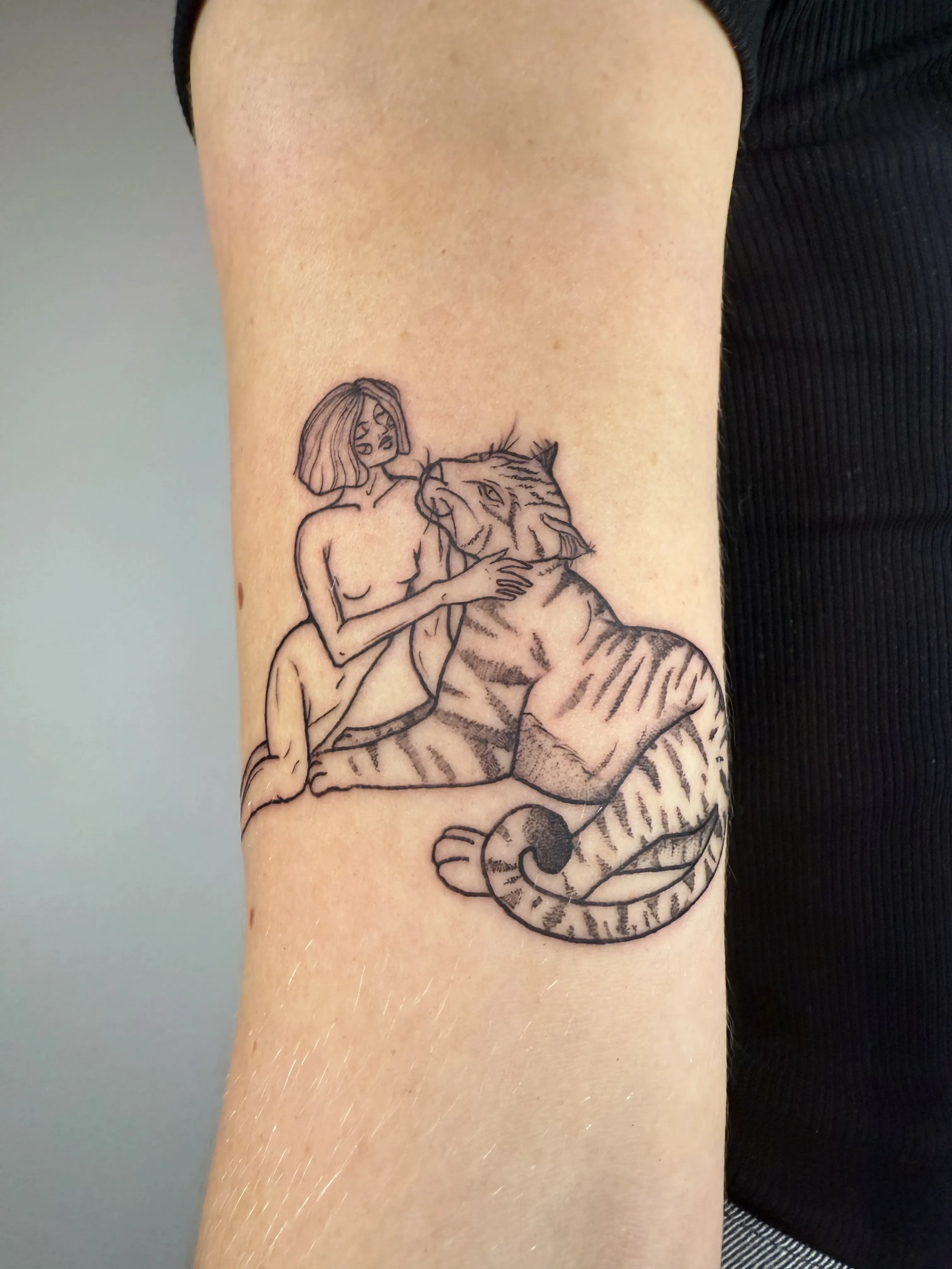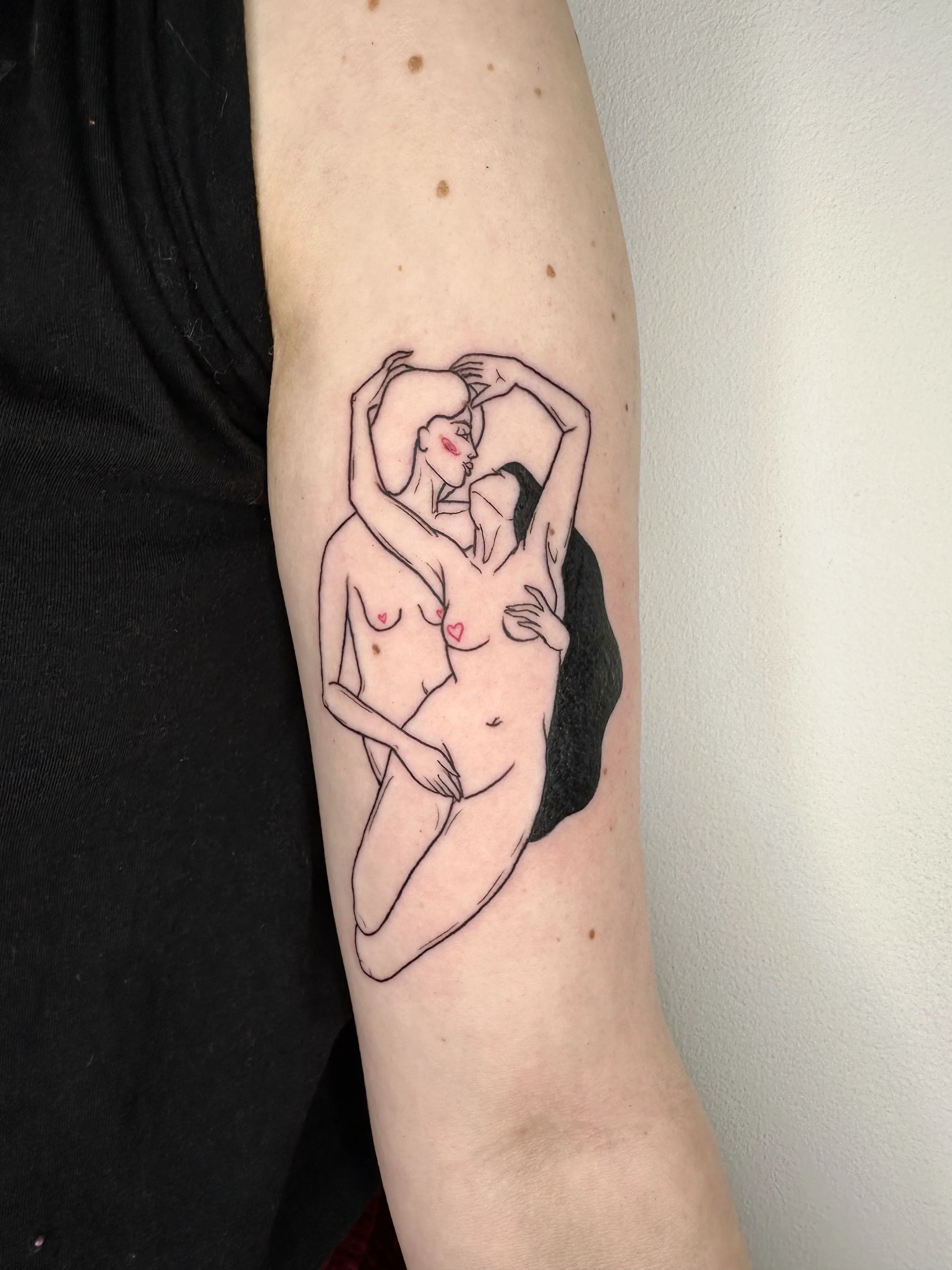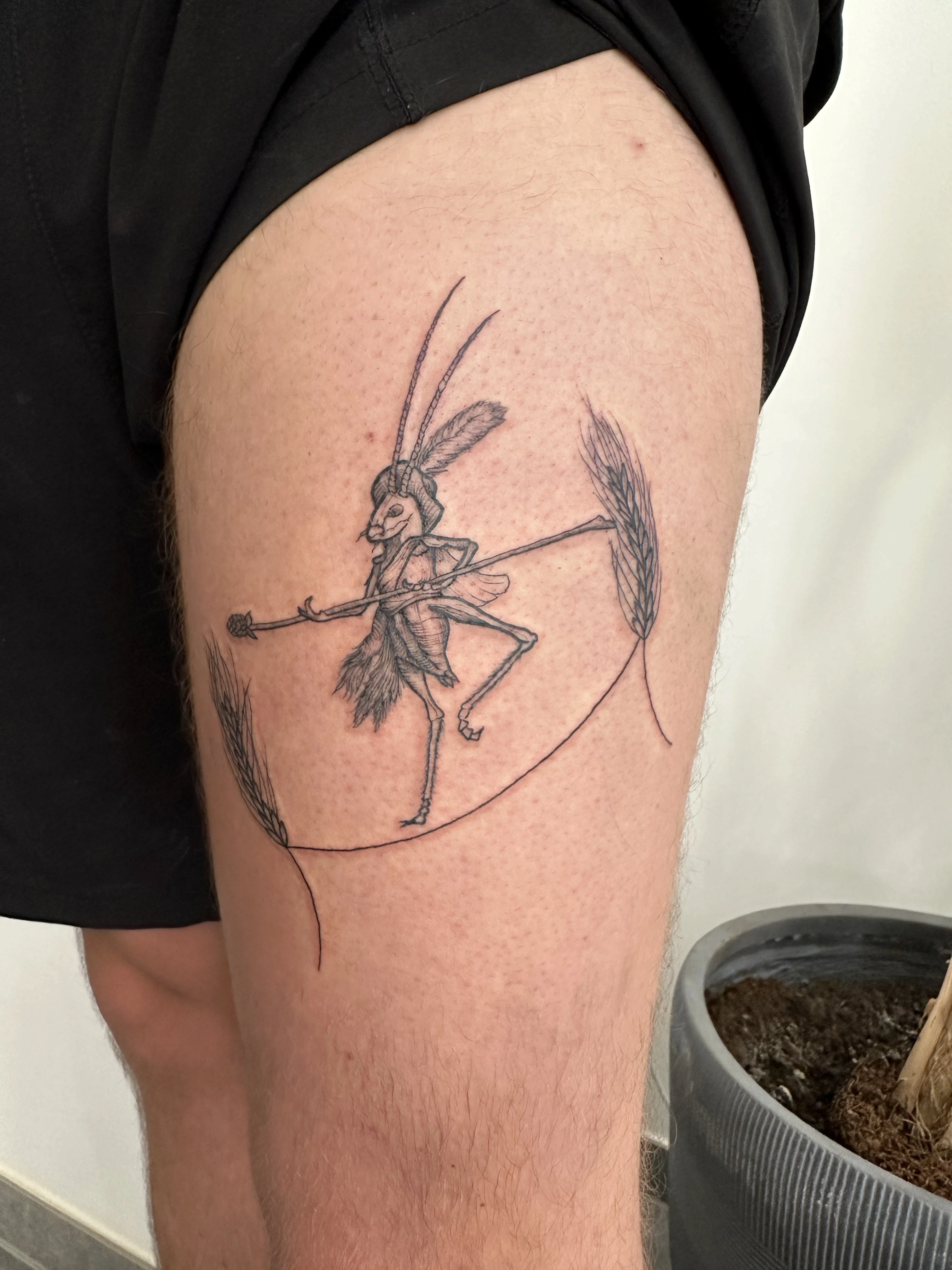Sandra works with clear linework and clean compositions. Her tattoos are playful yet precise, often depicting small characters, objects and symbols with a strong graphic quality.