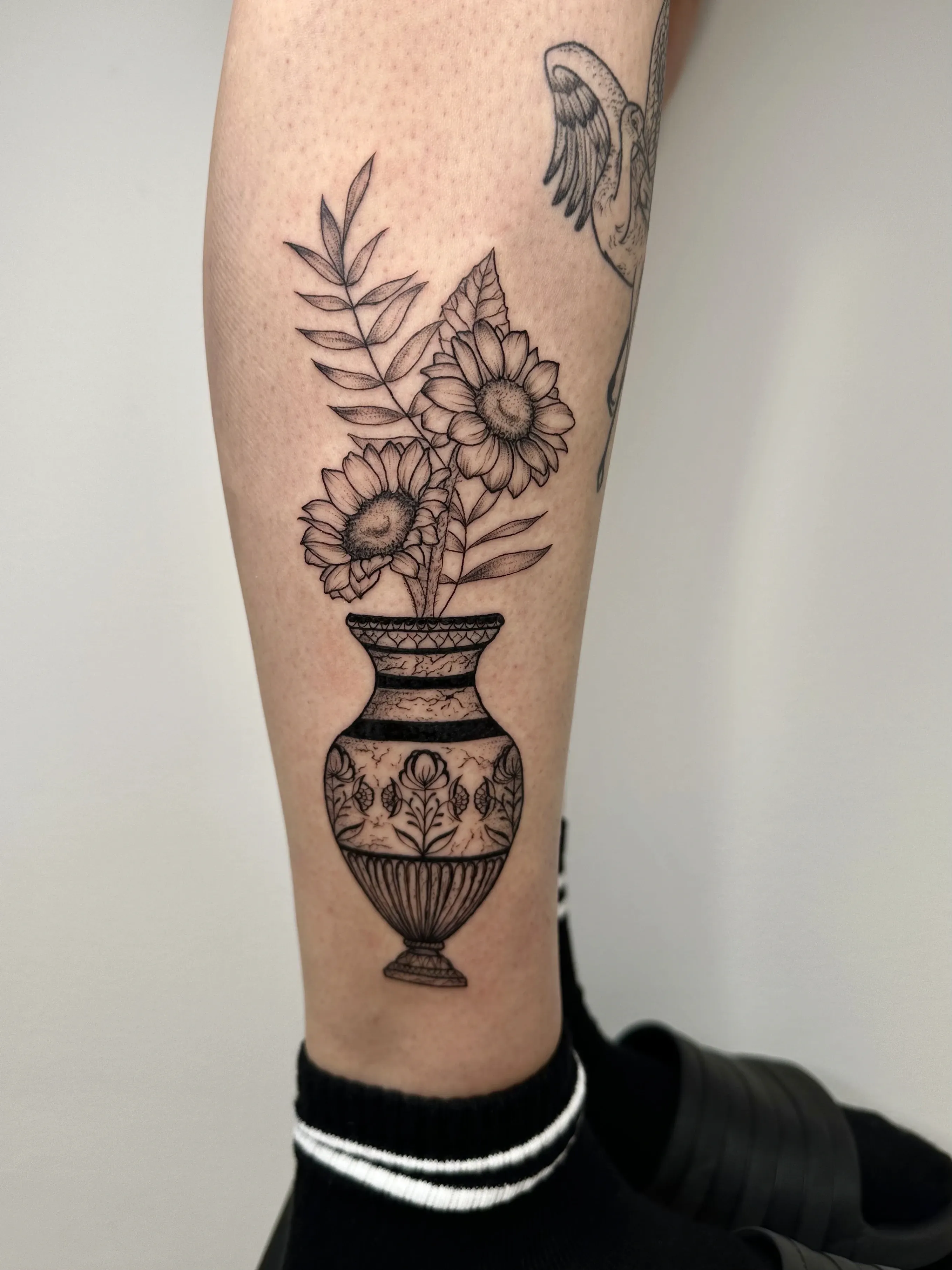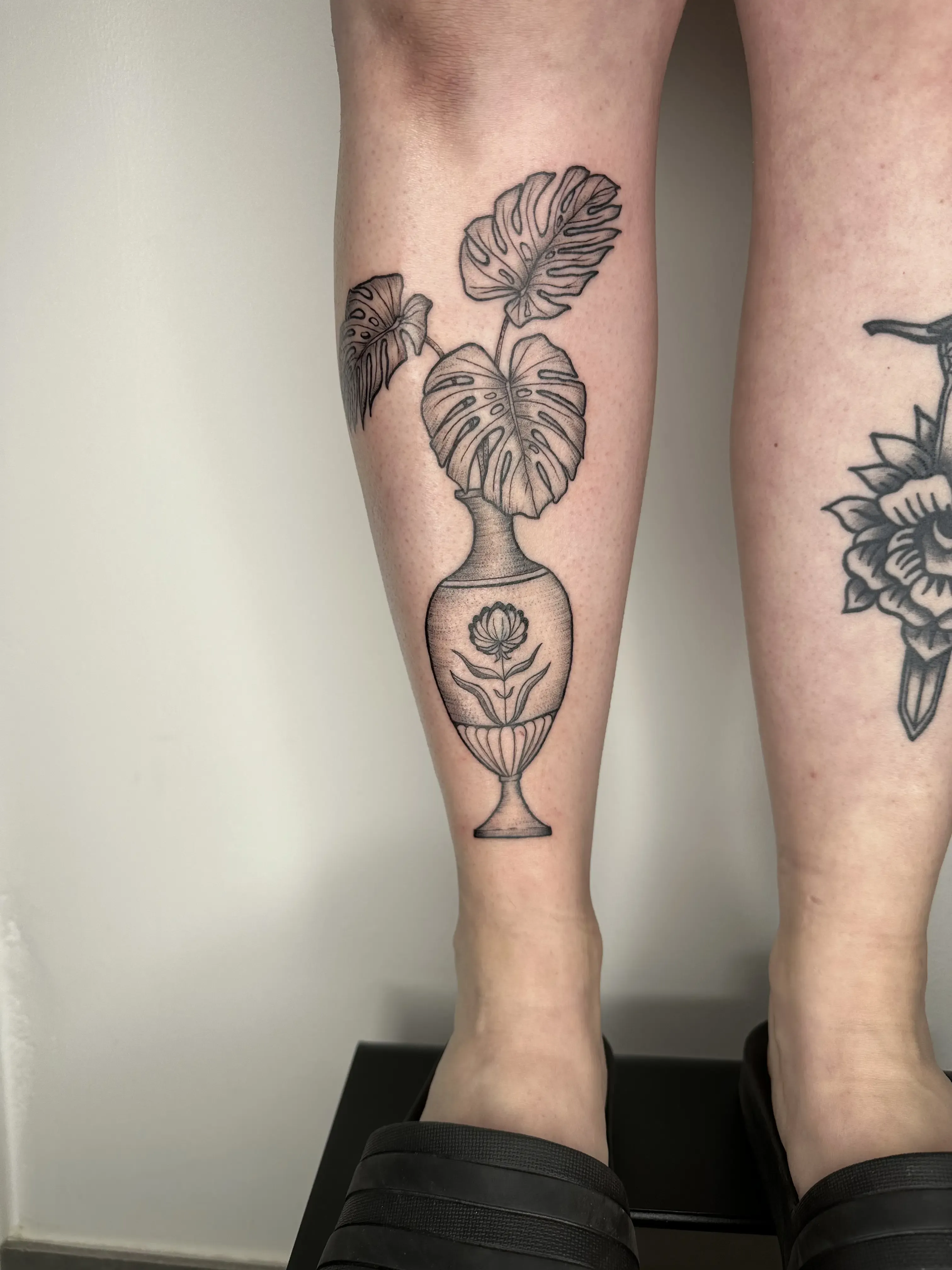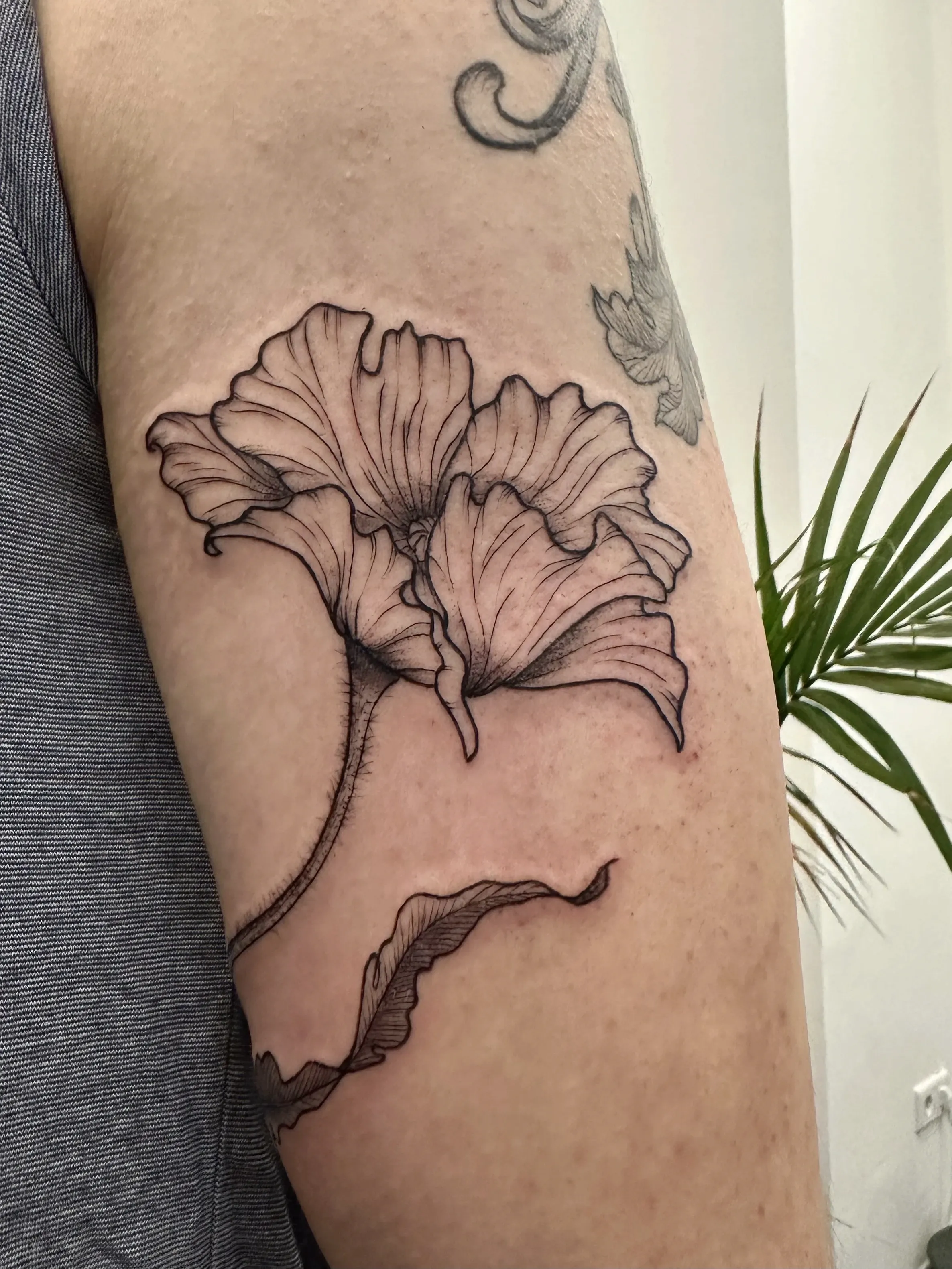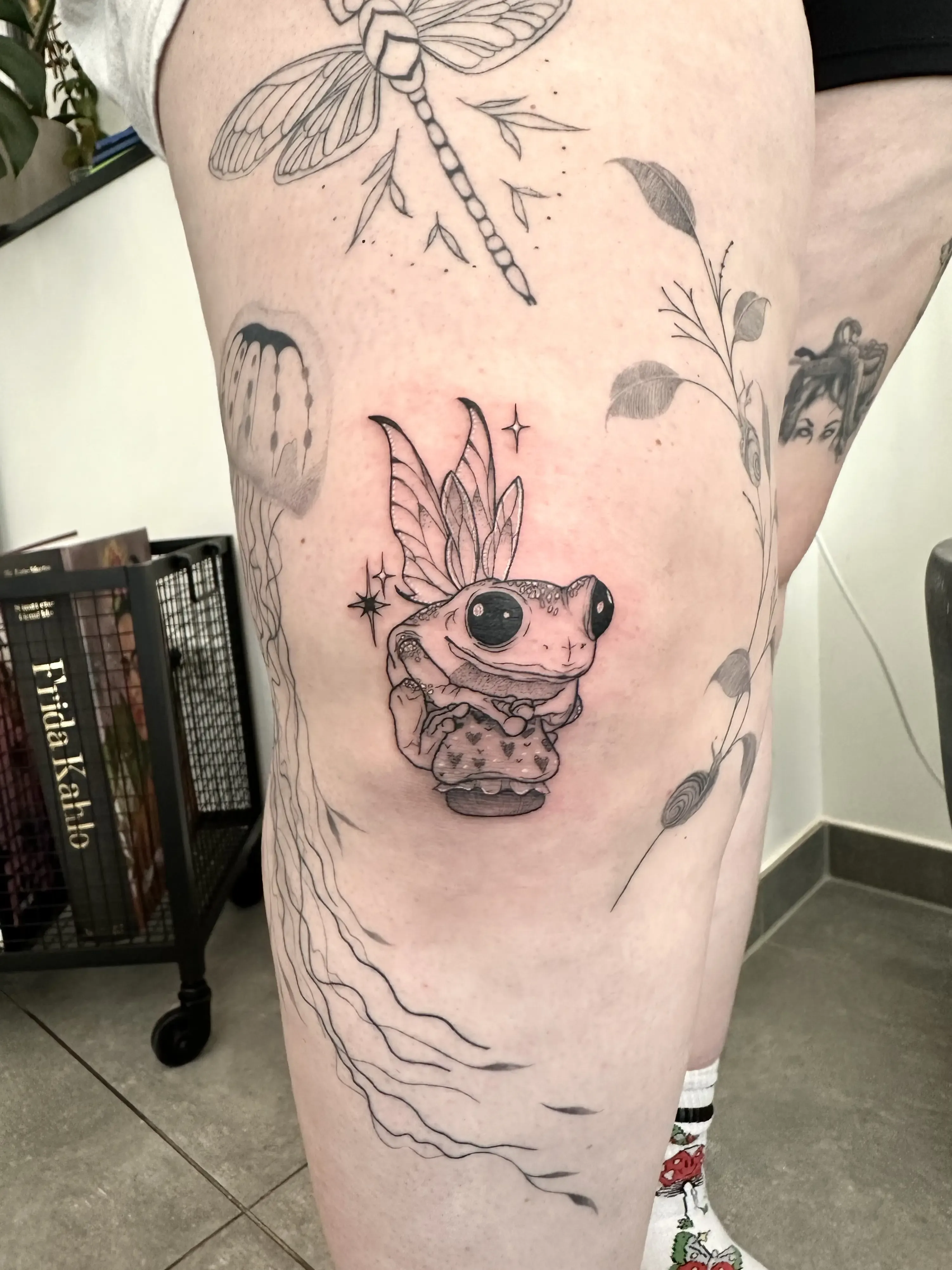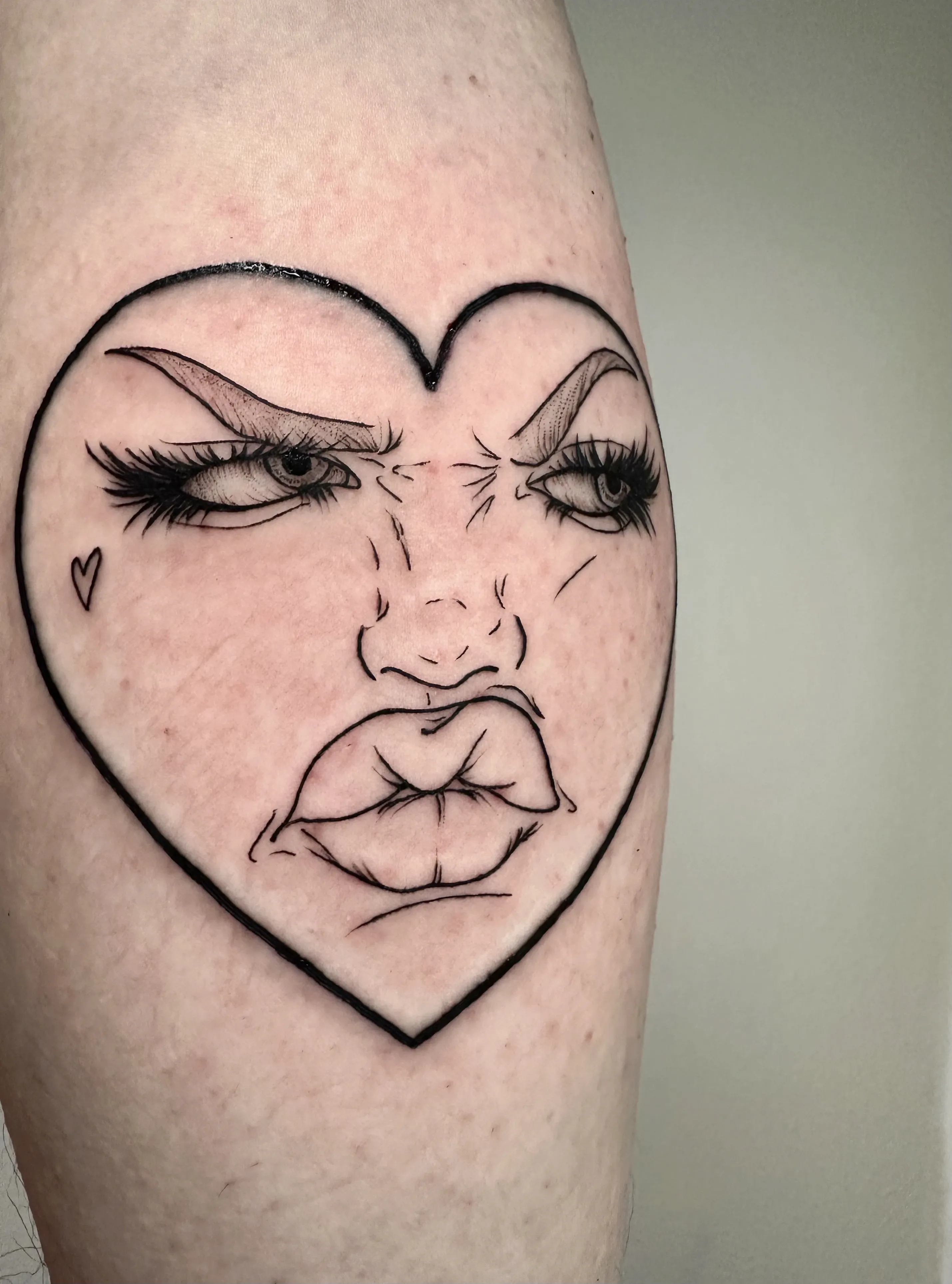 Sandra works with clear linework and clean compositions. Her tattoos are playful yet precise, often depicting small characters, objects and symbols with a strong graphic quality.