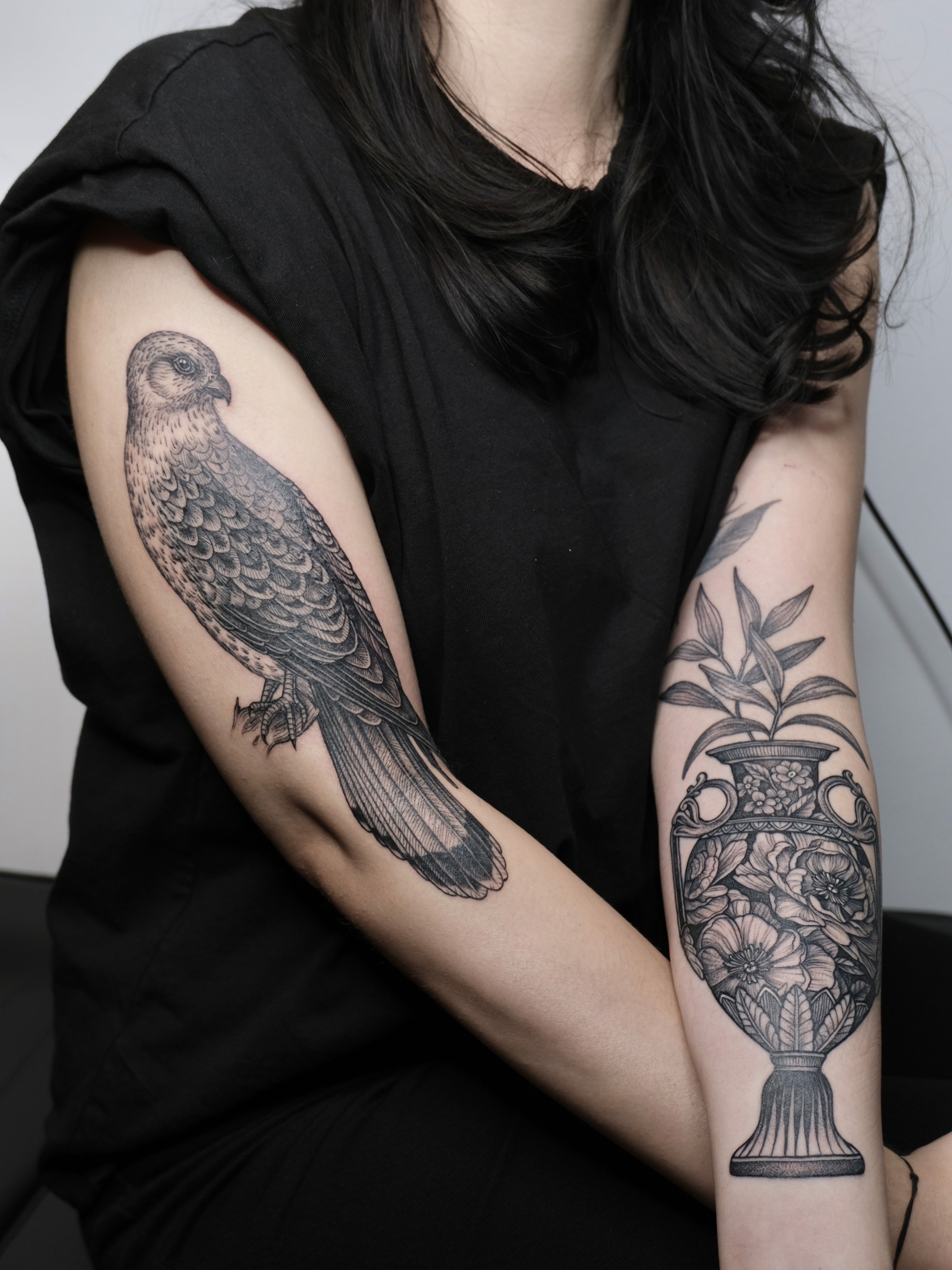 Motifs inspired by nature, featuring plants, leaves, and flowers. Usually fine and organic in structure, ranging from minimal to detailed compositions.