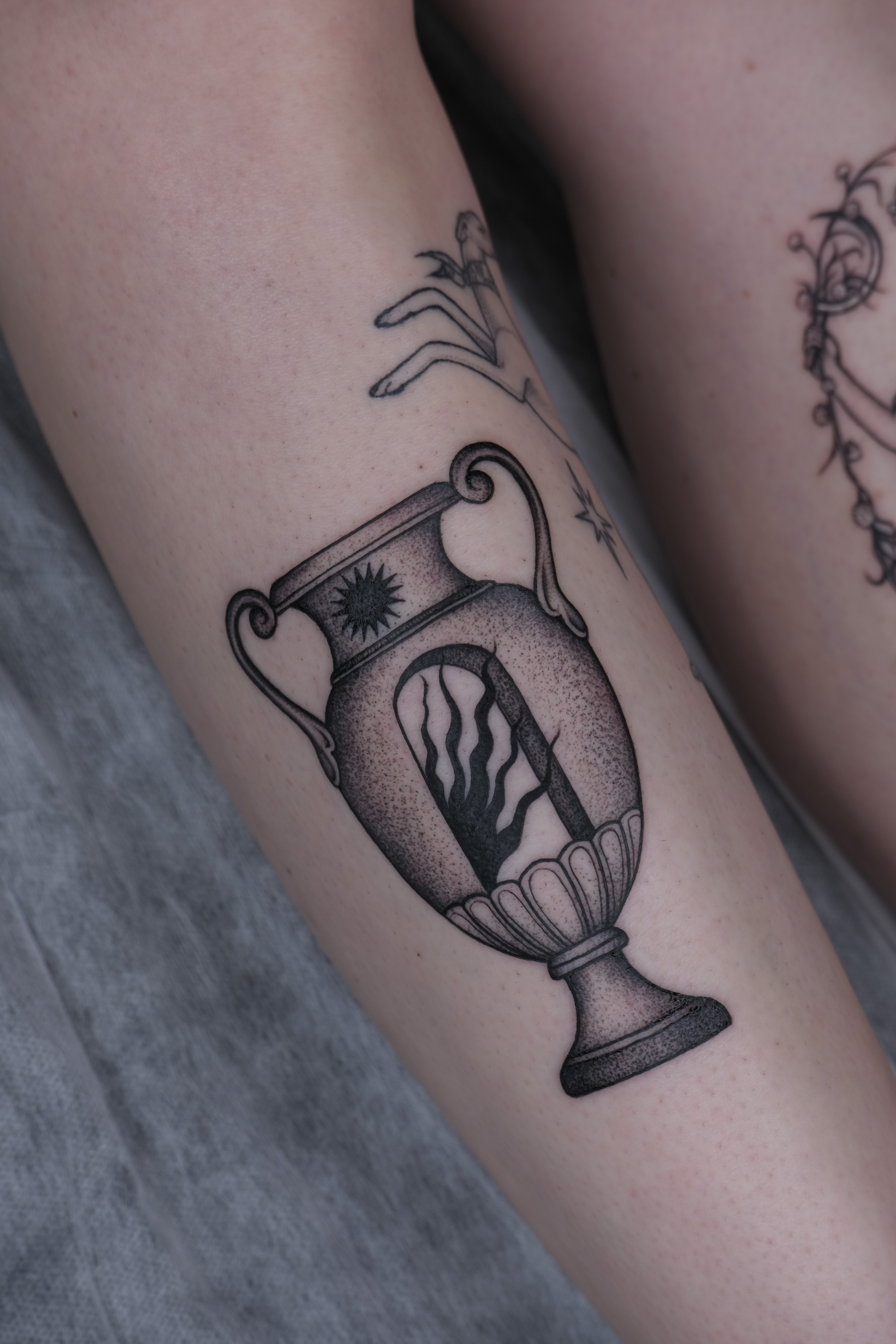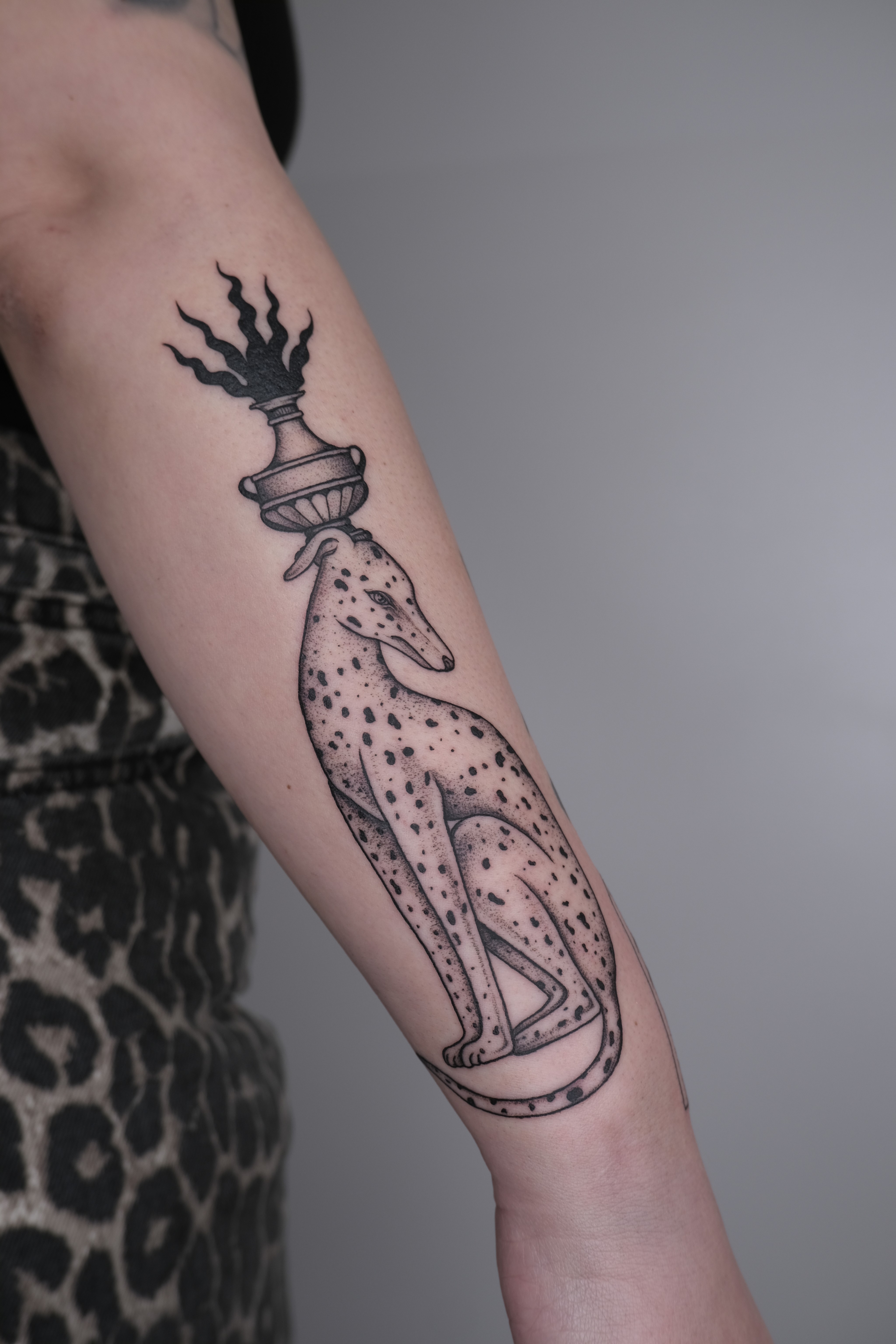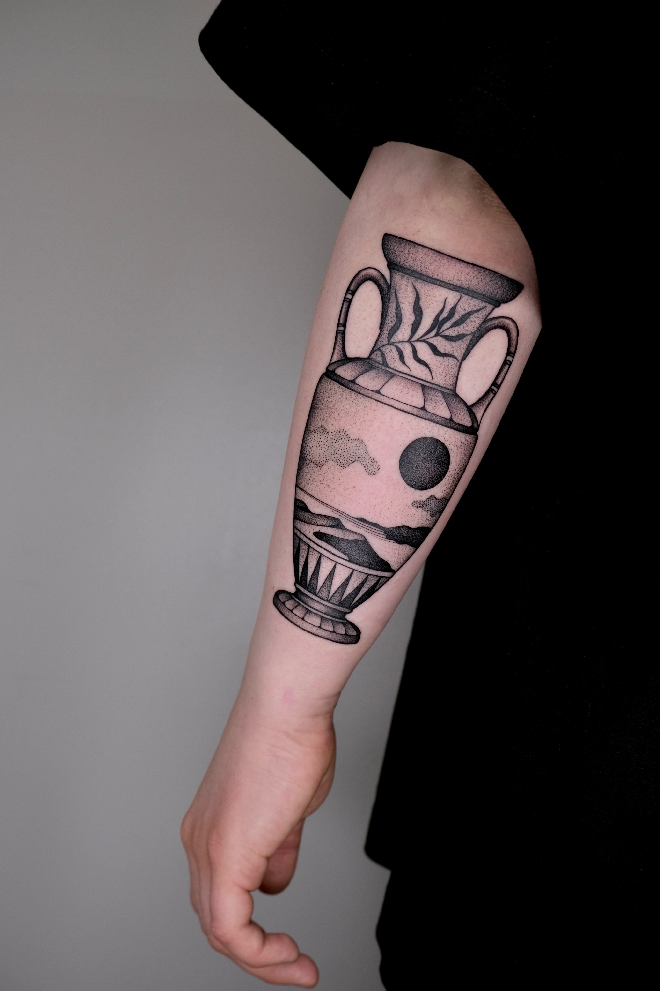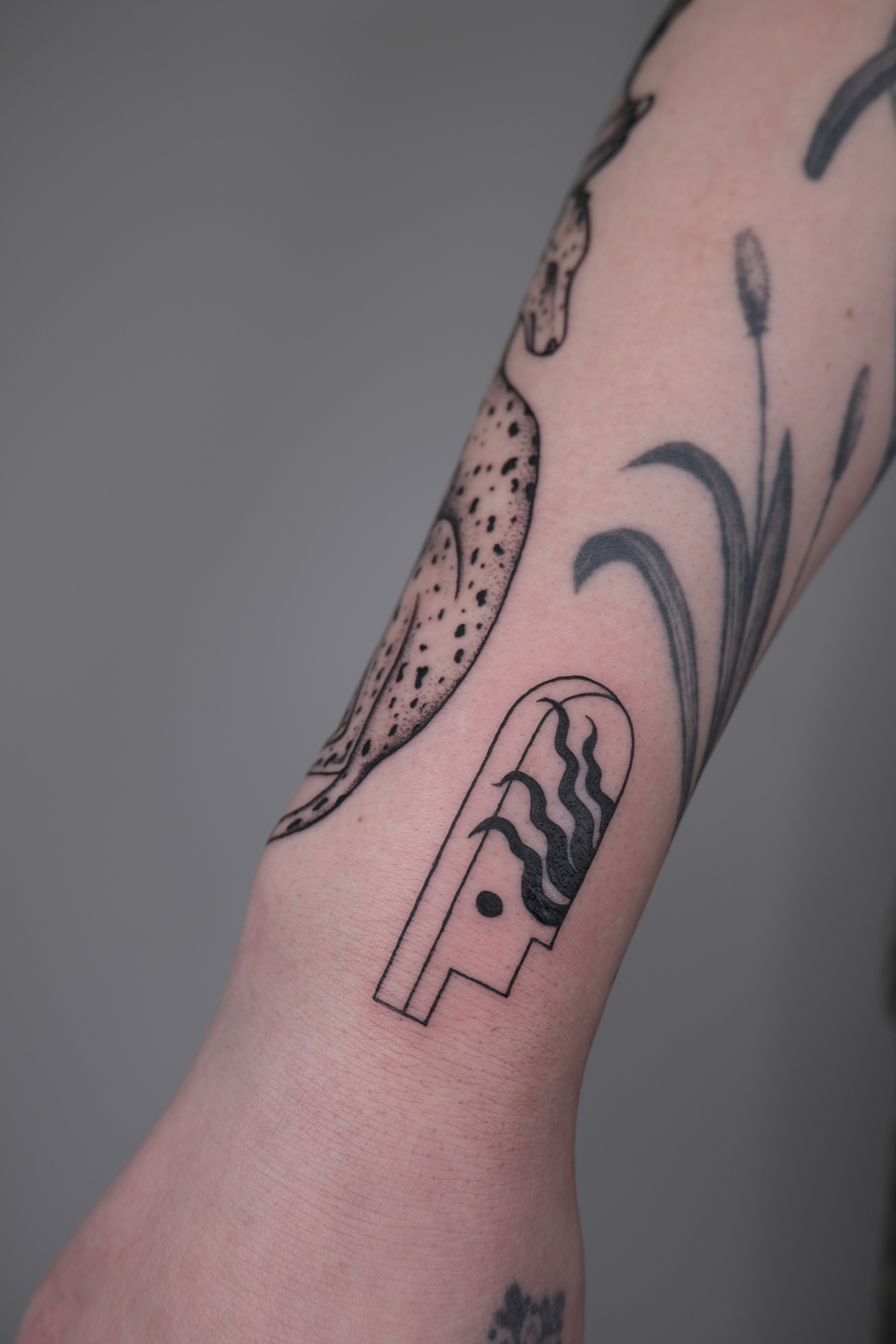 Design-focused tattoos with bold contrast, clean structure, and strong visual rhythm. Often influenced by printmaking or poster design aesthetics.